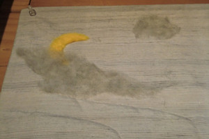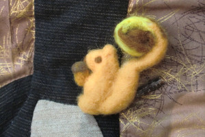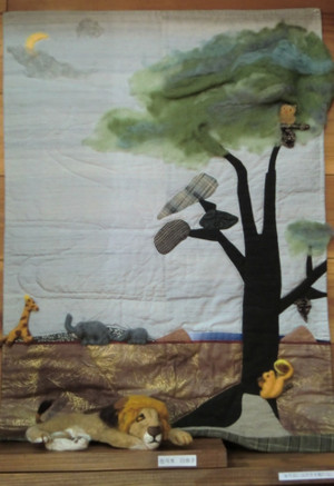 タペストリーはパッチワークの技術に羊毛のアップリケをプラスして、